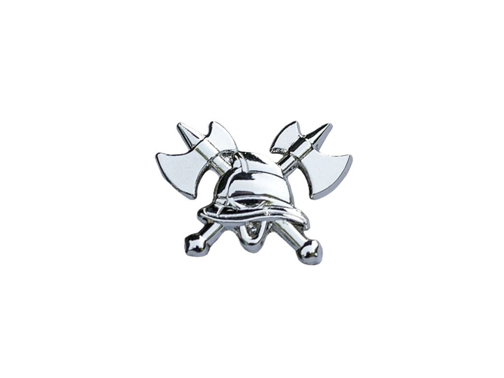 Hasičský odznak 3D helma a sekery je elegantným doplnkom hasičskej rovnošaty.