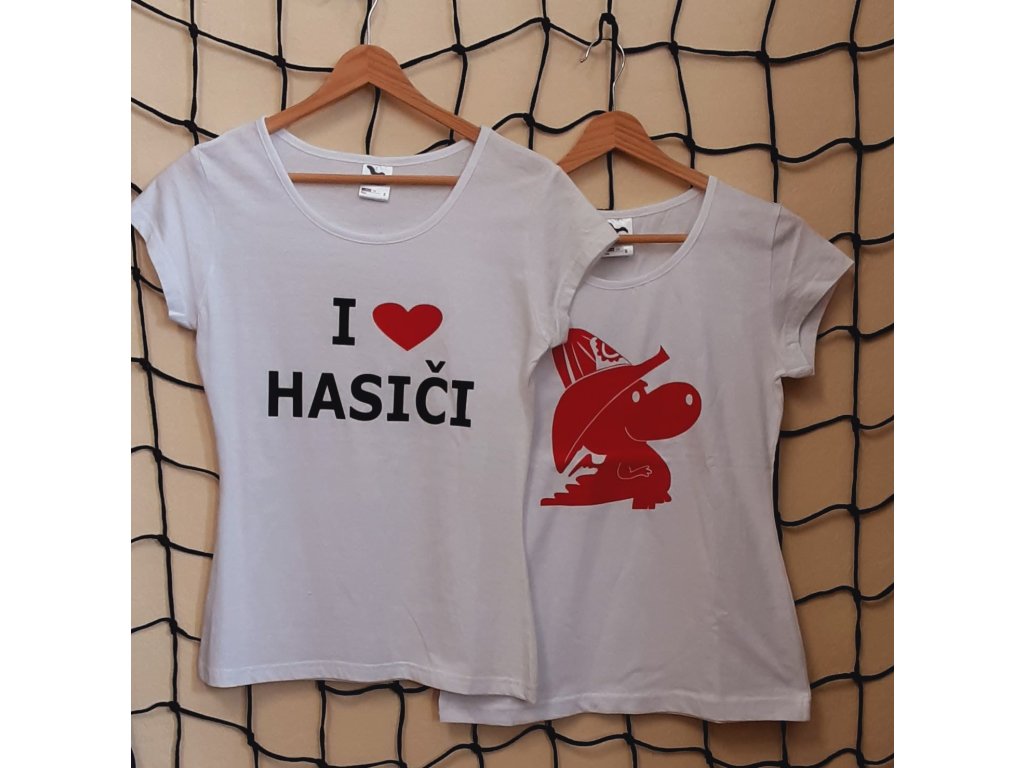 Dámske tričká DRÁČIK a I LOVE HASIČI. Materiál 100% bavlna.