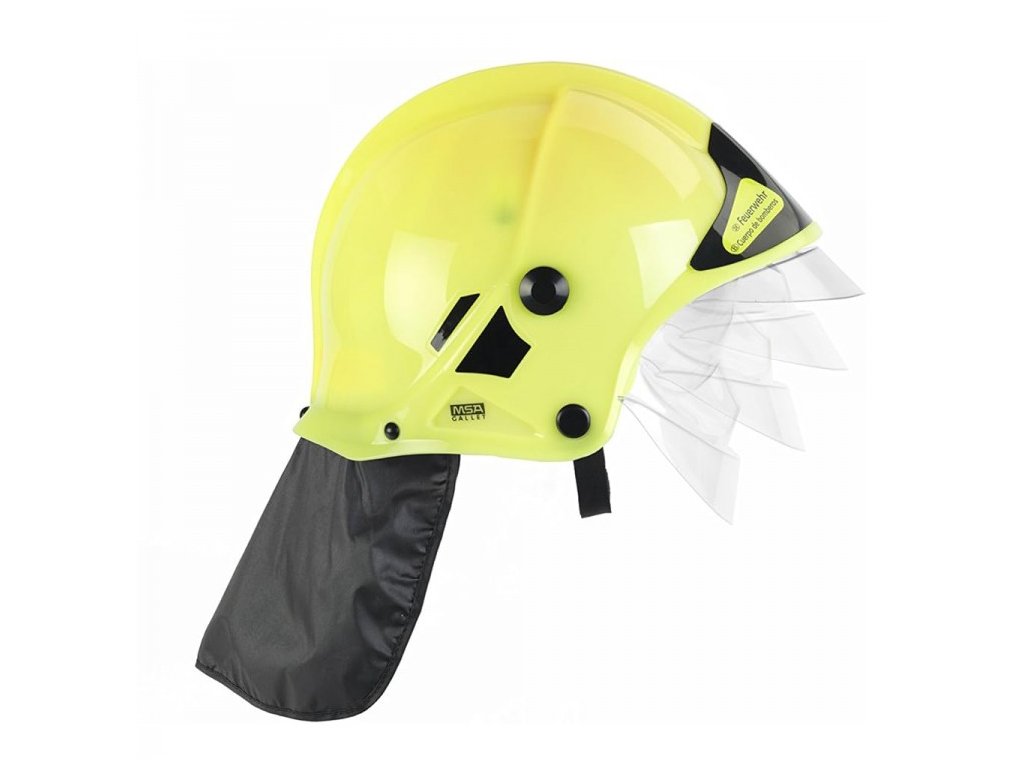 s ochranným krytom na oči a límcom na krku.