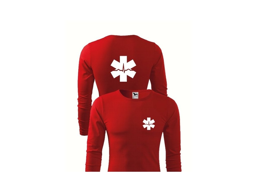Pánske tričko s dlhými rukávmi, červená farba s bielym logom EKG kardiogram.