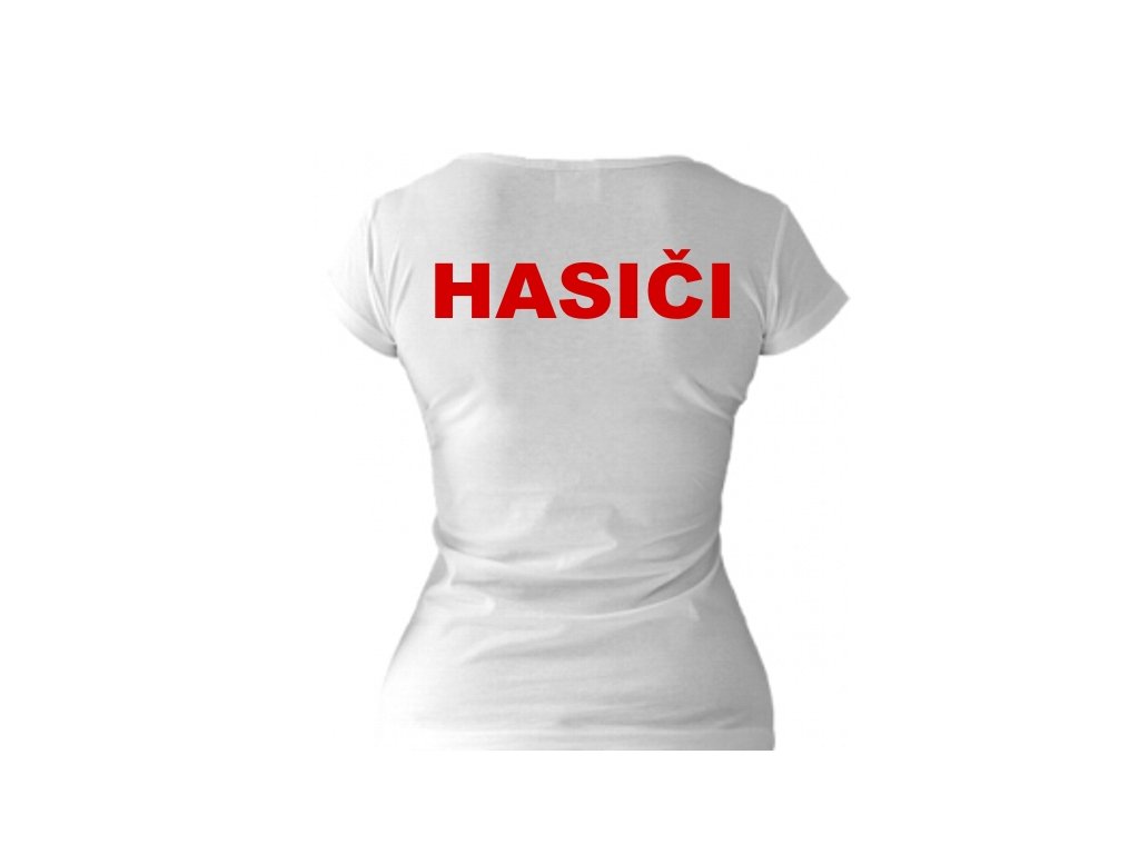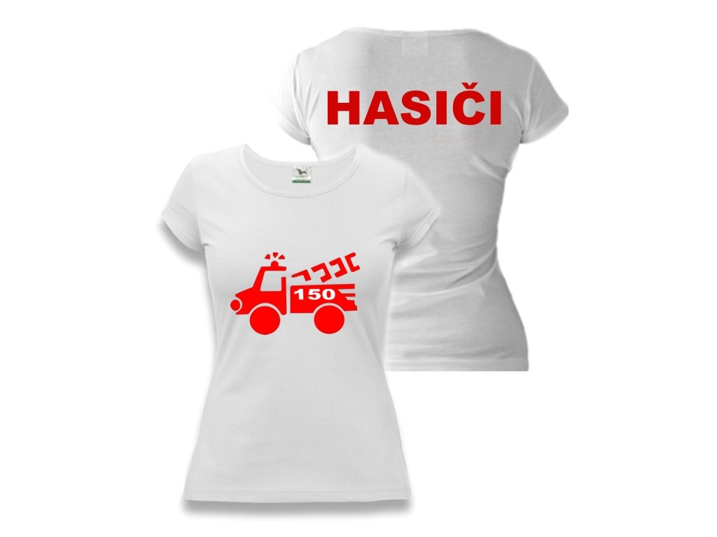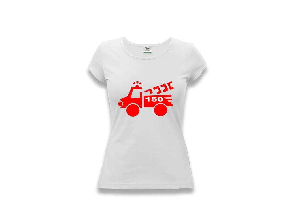 Dámske tričko s červeným hasičským autom a nápisom HASIČI