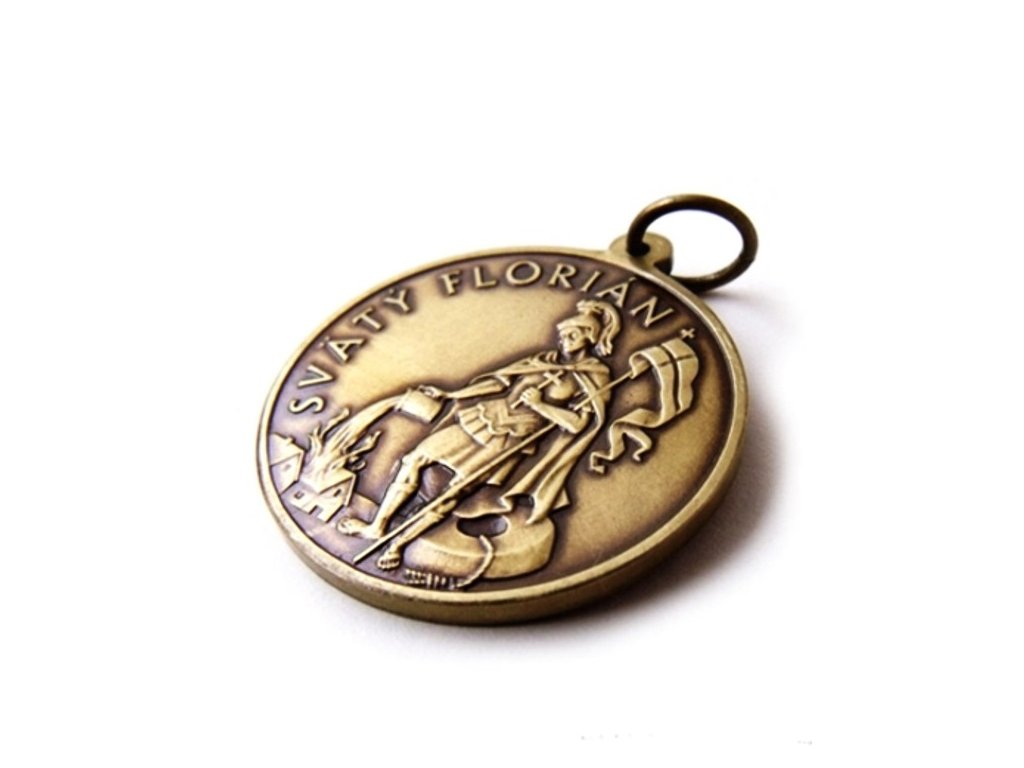 Prívesok Svätého Floriána, razený obojstranný motív.