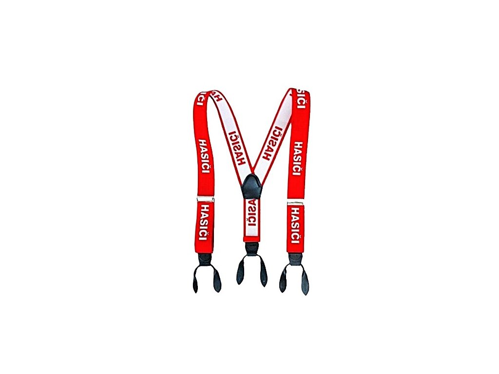 Hasičské traky čierne so zapínaním k odevu na ušká gombíky.