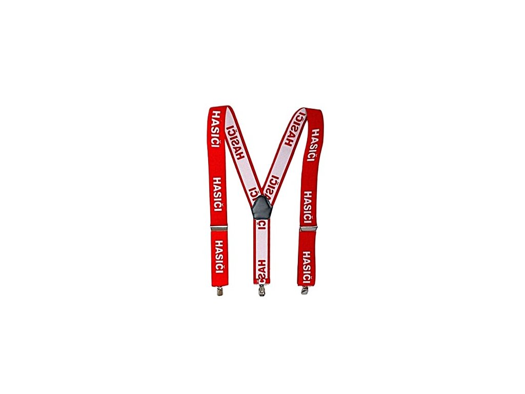 Hasičské traky červené so zapínaním k odevu na klipsy.